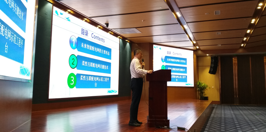 貴州大學常務副校長王紅蕾對《柔性配電網關鍵技術及其應用》做主題報告。報告中不僅詳細闡述了柔性互聯配電在設備控制、配電網運行、配電網規劃三個層面的關鍵技術,還詳細介紹了貴州大學與貴州電網有限責任公司共同承擔的“城市配電網柔性互聯關鍵設備及技術的研究”及“面向能源互聯網的配網側/需求側綜合能源管理技術研究與示范”工程建設情況。