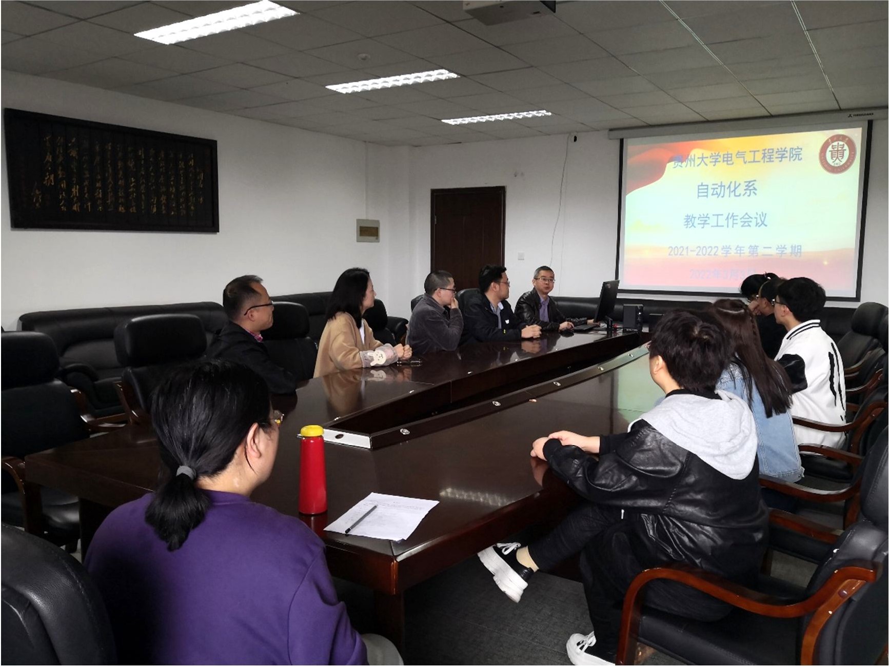 系主任楊靖介紹了 2021-2022第 2學(xué)期自動(dòng)化系在學(xué)科建設(shè)方面的工作計(jì)劃,王霄副主任對(duì)自動(dòng)化系近期教學(xué)工作進(jìn)行了梳理,部 署了自動(dòng)化系下一步的教學(xué)工作,并要求大家一定要要全面貫徹黨的 教育方針,落實(shí)立德樹人根本任務(wù),將思政融入我們的課堂教學(xué),為黨 和國家培養(yǎng)德智體美全面發(fā)展的社會(huì)主義建設(shè)者和接班人。會(huì)議中還 針對(duì)疫情期間學(xué)生們的實(shí)習(xí)實(shí)踐環(huán)節(jié)進(jìn)行了討論,在保證防疫工作和學(xué)生安全的情況下,制定合理的實(shí)習(xí)實(shí)踐方案,以學(xué)生為中心,盡量 保證學(xué)生們的校外實(shí)習(xí)順利開展。