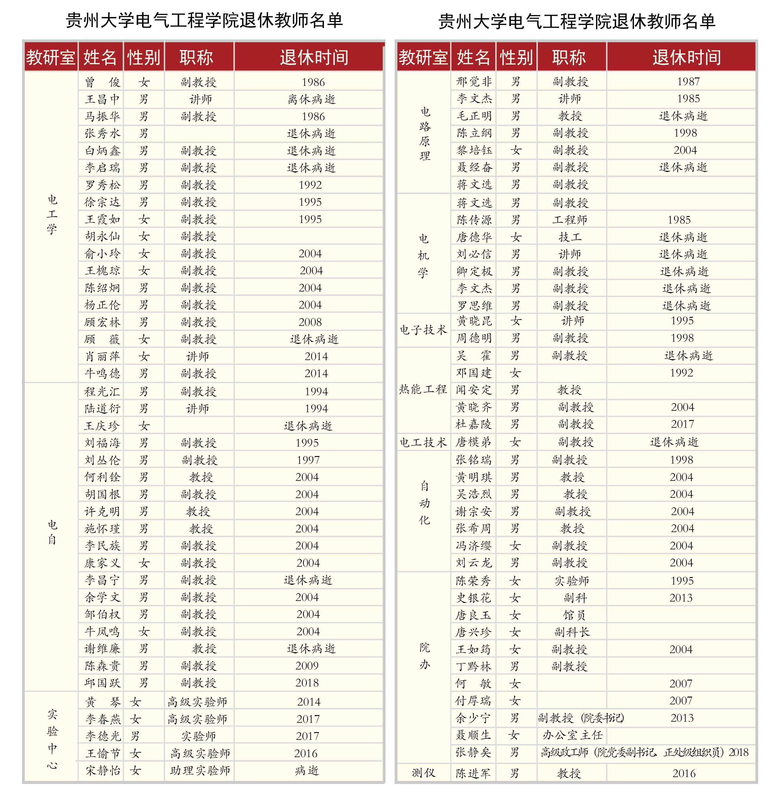 退休教師暨在院工作過人員名單(1958--2018)