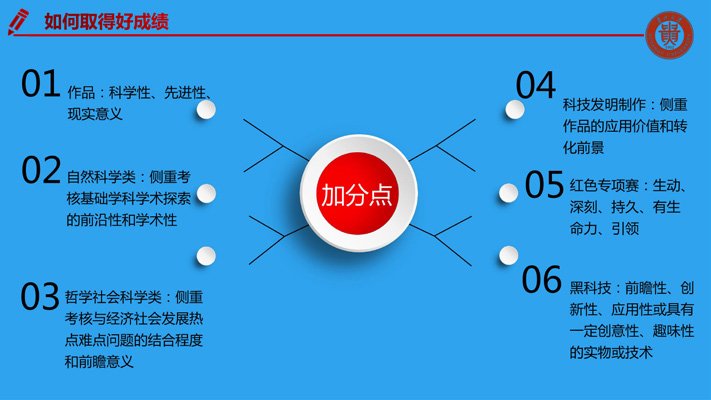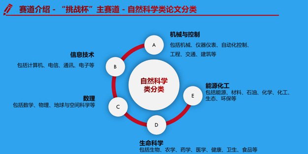 競賽方式:(主賽道)申報參賽的作品分為自然科學類學術論文、哲學社會科學類社會調查報告和學術論文、科技發明制作三類。想要取得好成績,就一定要充分了解“大挑”競賽的賽程安排和對作品的要求以及加分點。