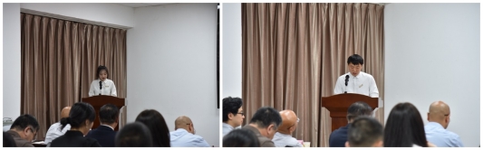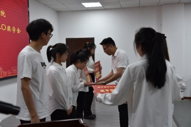 咸亨國際科技股份有限公司總經(jīng)理夏劍文先生、研發(fā)總監(jiān)李文國先生,發(fā)電八O基金會曾慶鋒學長分別向本年度獲“咸亨獎(助)學金”的10名同學和獲“發(fā)電八O獎學金”的3名同學頒獎。獲得“咸享獎(助)學金”學生代表馬宇宸和獲得“發(fā)電八O獎學金”學生代表楊昊同學作了發(fā)言。