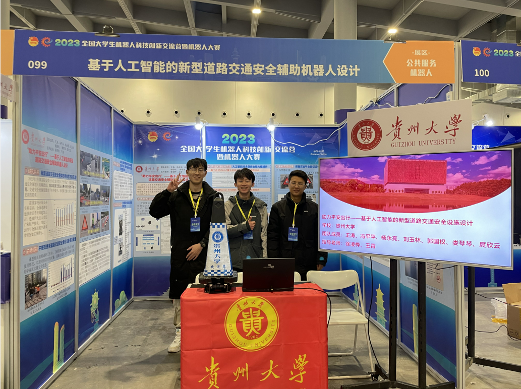 本次大賽共吸引來自全國30個省、自治區、直轄市及新疆生產建設兵團431所高校的1017件作品參賽,經過激烈角逐,共有221件作品團隊一路過關斬將進入終審決賽。我院作品《基于人工智能的新型道路交通安全輔助機器人設計》(團隊成員:王濤、馮平平、楊永亮、劉玉林、郭國權、婁琴琴、庹欣云,指導老師:徐凌樺、王霄)代表貴州大學參加決賽。
