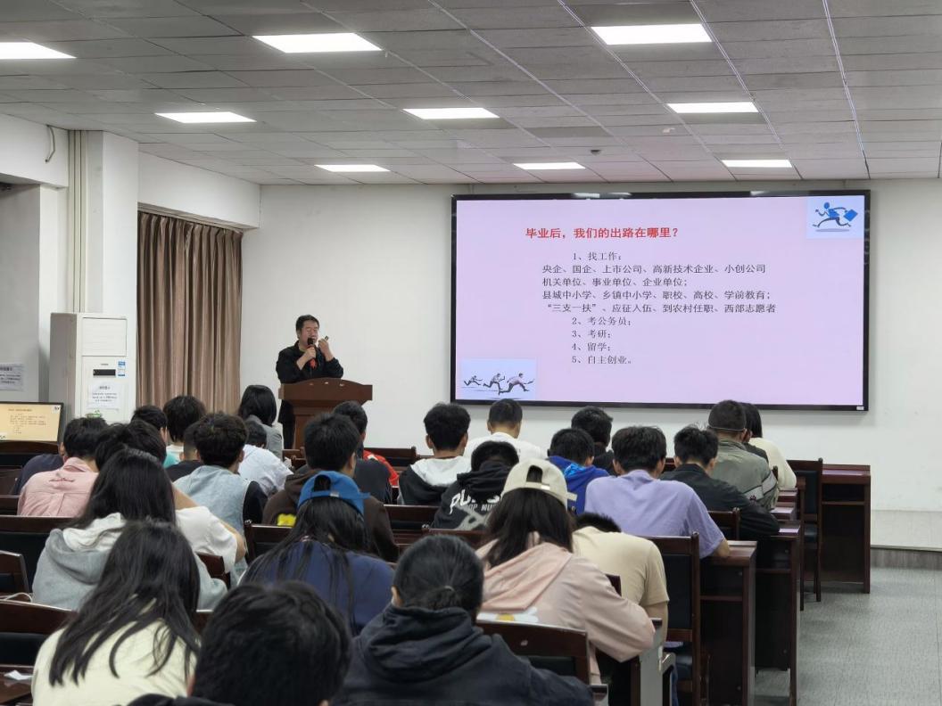 會上,輔導(dǎo)員羅鑫對當(dāng)前2020級學(xué)生就業(yè)情況做簡要說明與分析研判。隨后,學(xué)院黨委書記劉明鋒對當(dāng)前就業(yè)形勢進(jìn)行深入分析,他指出,當(dāng)前就業(yè)形勢依然復(fù)雜嚴(yán)峻,畢業(yè)生要樹立正確的就業(yè)觀念,增強(qiáng)專業(yè)自信、就業(yè)自信,積極面對挑戰(zhàn),做到先擇業(yè)再就業(yè)。鼓勵畢業(yè)生要抓住“金九銀十”的黃金時機(jī),積極參加各類招聘活動以及社會招聘考試。學(xué)院正處級組織員侯亞兵就當(dāng)前畢業(yè)生可選擇去向做指導(dǎo)介紹,并解讀相關(guān)就業(yè)政策。