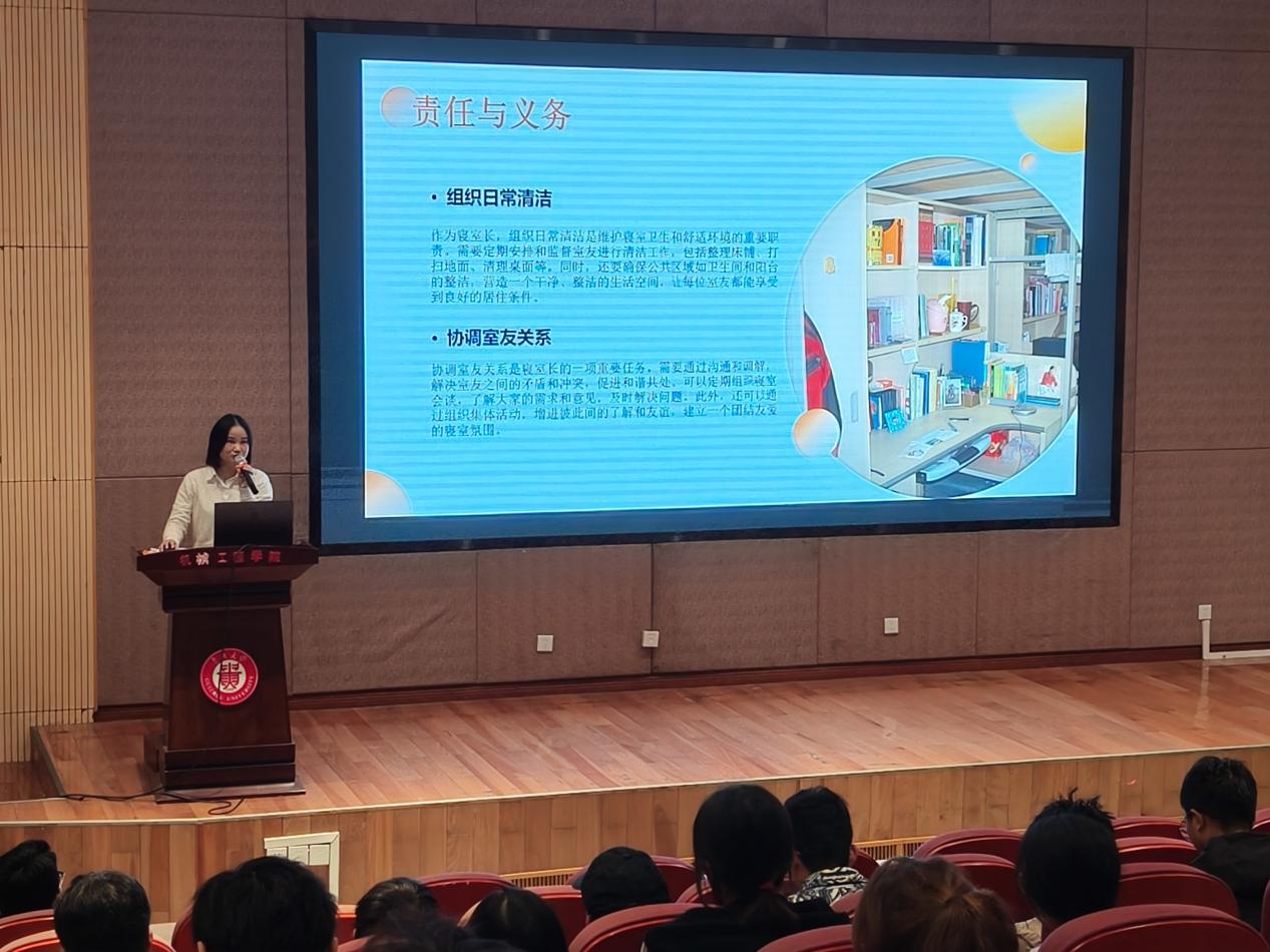 為進一步提升班級管理和寢室管理的效能,加強學生干部隊伍的建設,學院于1022日在機械學院圓形報告廳舉行2024級新生班委班干技能暨第一次寢室長培訓會2024級輔導員羅鑫老師主講。