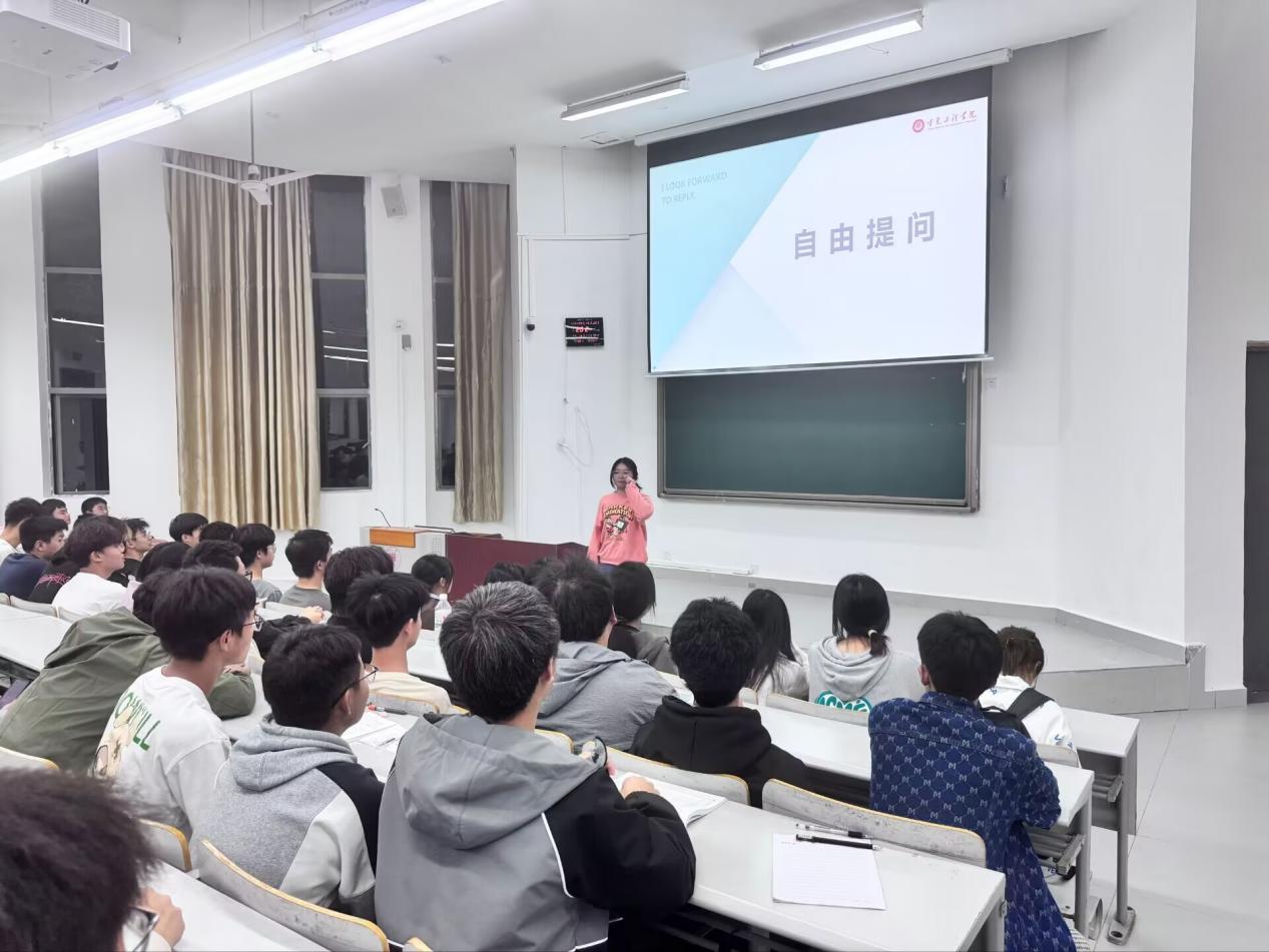 在交流環(huán)節(jié),現(xiàn)場(chǎng)氣氛達(dá)到了高潮。同學(xué)們積極踴躍地提問,問題涵蓋了學(xué)習(xí)方法、專業(yè)發(fā)展、競(jìng)賽準(zhǔn)備等多個(gè)方面。