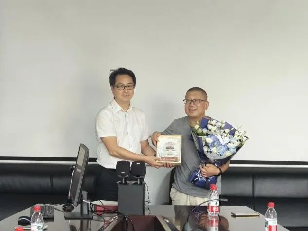 隨后,舉行了榮休儀式,學院年輕教師為老教師鄒曉松獻上鮮花,學院院長張靖代表學院為其頒發(fā)榮休紀念品。