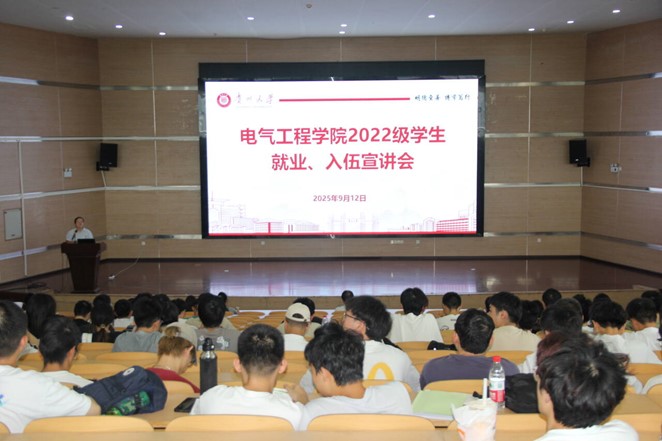 2025年9月12日,學院2022級學生就業入伍宣講會在建規學院報告廳舉行。本次會議由2022級輔導員陳倩主持,學院黨委書記劉明鋒、黨委副書記趙曉丹、黨長青老師、優秀校友代表及2022級全體本科生參會。