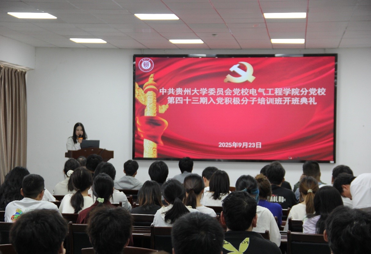 2025922日,中共貴州大學委員會黨校3522集團新網站分黨校在電工樓609會議室隆重舉行第四十三期入黨積極分子培訓開班典禮。共84名入黨積極分子參加典禮,輔導員羅鑫主持。